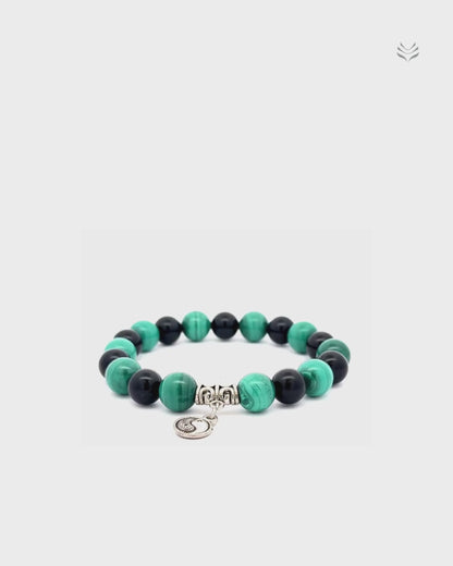 The Karmic Pattern Release bracelet made of obsidian and malachite helps you let go of old habits and negative emotions from your past lives or experiences. Obsidian absorbs negative energy and helps you think deeply about your feelings. Malachite, with its green color, supports you in changing and growing as a person. Together, these stones help you face your past and move forward with positivity and courage.