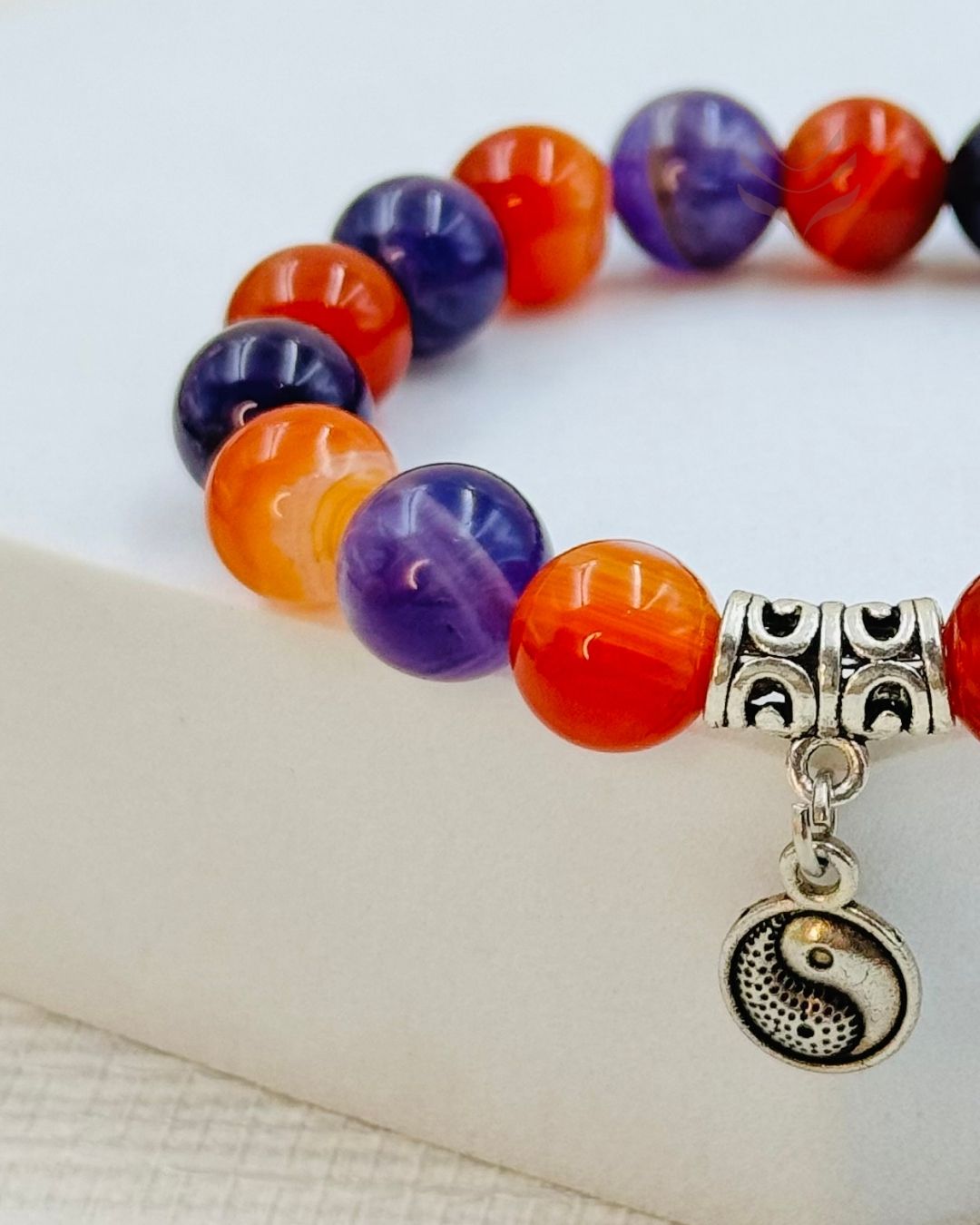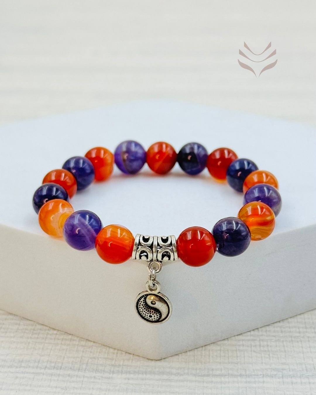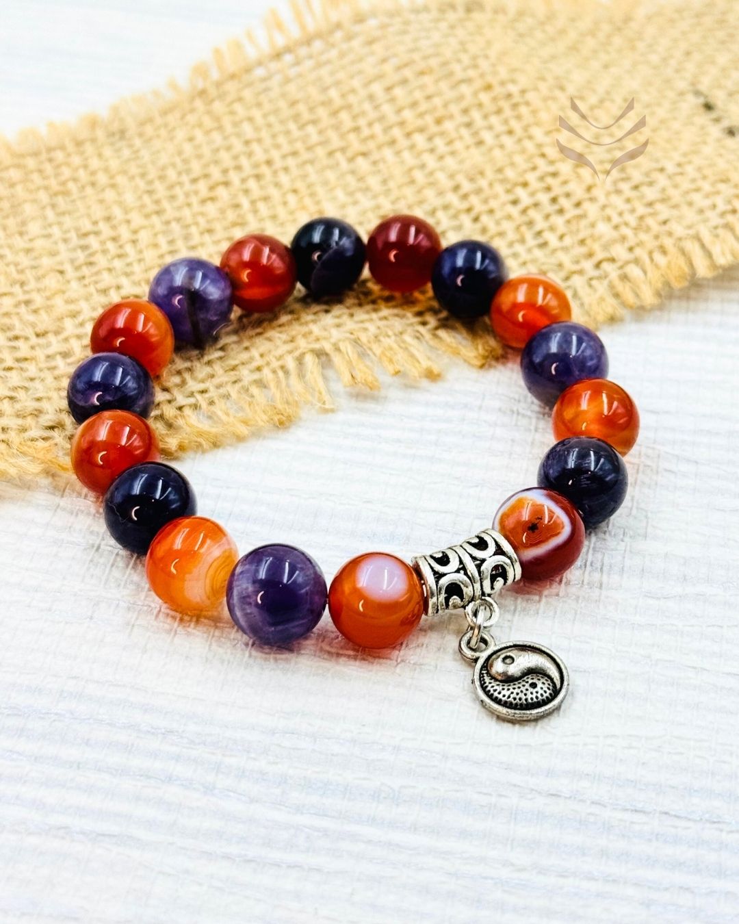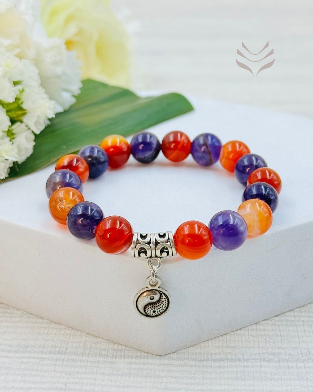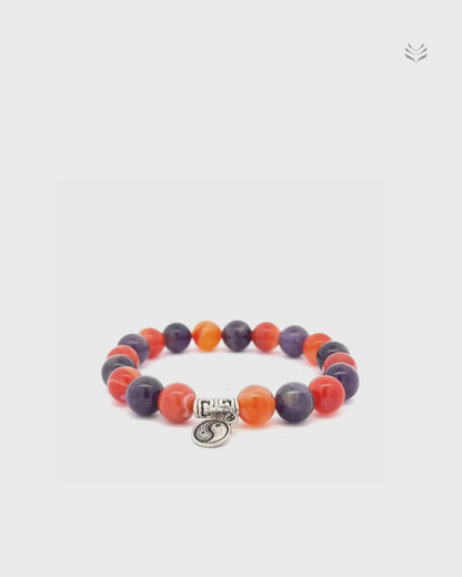 The Twin Flame Connection bracelet, crafted with carnelian and amethyst, caters to a special bond between two hearts. Carnelian, with its warm, orange glow, ignites passion and vitality, while amethyst brings a sense of peace and spiritual connection. Together, these stones create a powerful combination that supports the unique connection between twin flames.